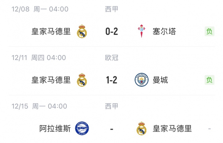 然而,皇马当前已经遭遇两连败,如果下轮西甲皇马客场再负于阿拉维斯,那么阿隆索的皇马执教之旅可能走向终结。